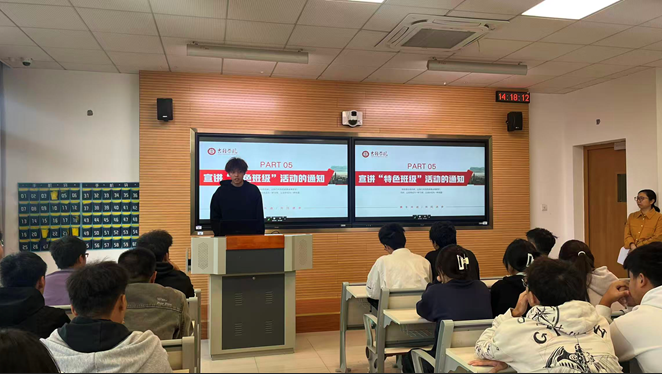 班长谢荣城则聚焦班级个性化发展,向同学们介绍了学院“关于在各班开展创建‘特色班级’活动的通知”,并详细讲解了“智能制造学院创建班级特色申报表”的填写规范与注意事项。他鼓励大家结合机器人工程专业优势,积极发散思维、集思广益,共同挖掘班级的独特亮点,如打造“机器人科创小组”“专业知识分享会”等特色活动,努力培育属于 2025 级机器人工程 1 班的专属品牌,让班级在众多集体中脱颖而出。