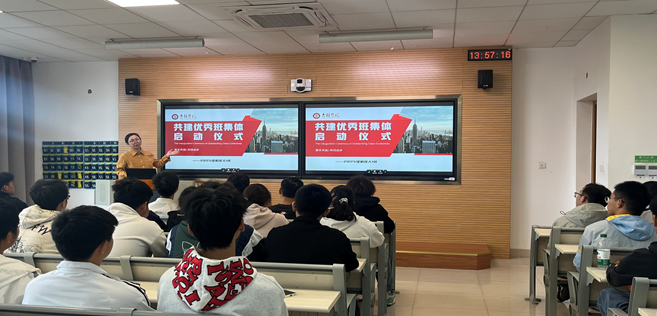 启动仪式在班主任黄老师的深情发言中正式拉开帷幕。黄老师首先从个人成长与集体发展的辩证关系切入,深刻阐述了创建优秀班集体的重要意义,她指出:“优秀的班集体不仅是同学们学习知识的‘主阵地’,更是大家锤炼品格、收获友谊、共同进步的‘温暖港湾’。” 在此基础上,黄老师明确提出了“学风扎实、班风和谐、富有特色” 的班级建设总体要求,并生动描绘了理想班集体的愿景 —— 每个同学都能在集体中找到归属感,彼此扶持、相互激励,共同成长为有理想、有本领、有担当的新时代青年。她的讲话既为本次启动仪式奠定了坚实的思想基调,也为班级未来的建设与发展指明了清晰方向,让在场同学对班级的未来充满期待。
