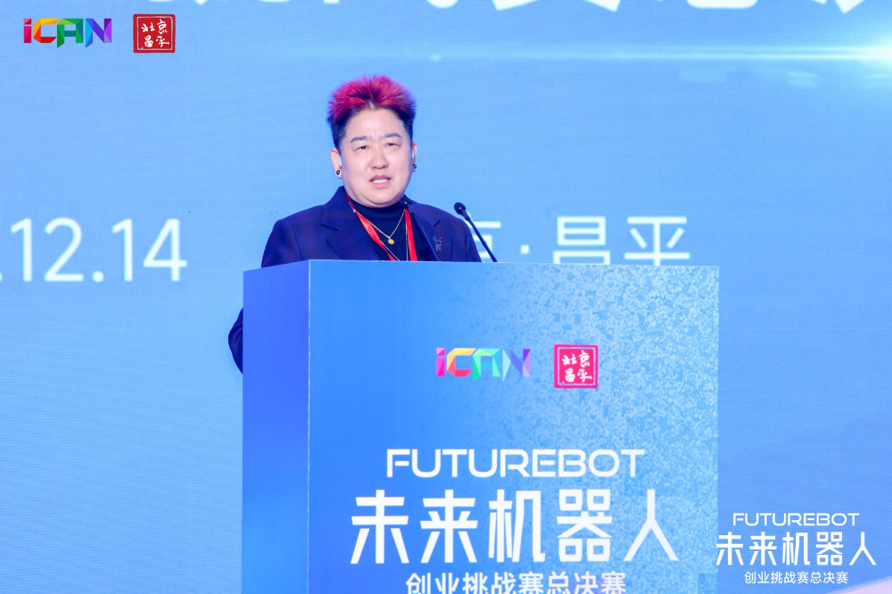 iCAN大赛发起人、北京大学张海霞教授发表了激情演讲,她鼓励青年创业者在昌平这片沃土上,敢于做原始创新,勇于跨越从样品到产品的鸿沟,深入真实应用场景,让机器人成为生活伙伴、工作助手,为社会创造价值。