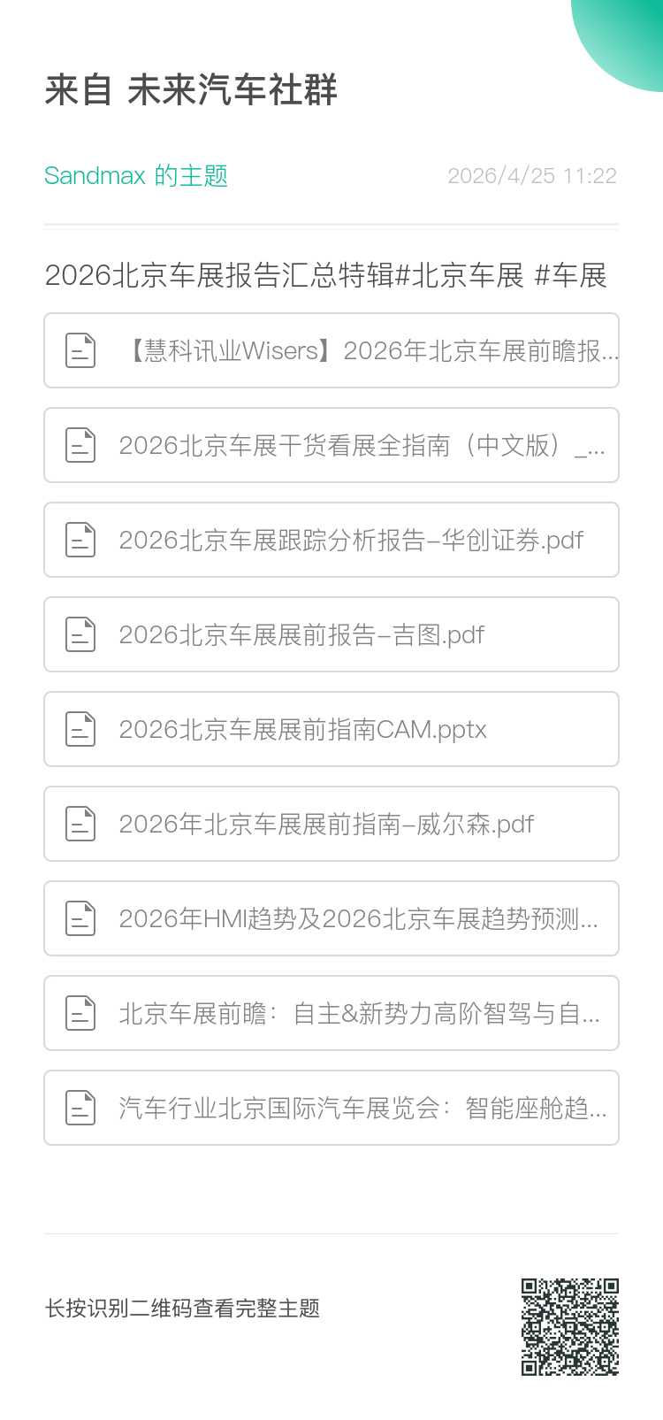 如欲获取2026北京车展报告合集,请扫描下方二维码