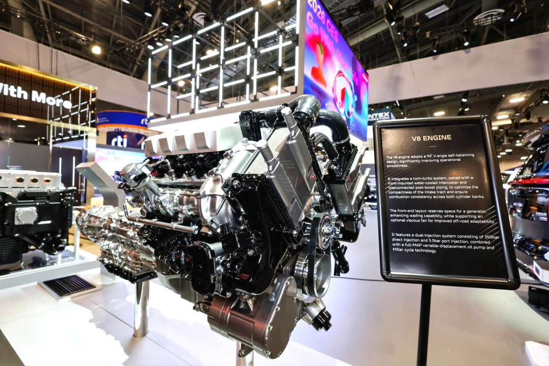 在动力技术的创新表达中,中国智慧与现代工程实现完美交融。长城汽车引以为豪的Hi4智能电混四驱技术体系中,面向泛越野场景的Hi4-Z,其功率分流技术灵感源自2300多年前的都江堰水利工程,秉承“因势利导、顺势而为”的哲学,通过“智能鱼嘴”般的功率分流行星轮、“宝瓶口”式的三档DHT和“飞沙堰”般的双电机,实现动力的智能分配与高效利用,这一独特的技术创新吸引了全球媒体与观众驻足探究。与此同时,自研V8发动机及首搭灵魂摩托的H8发动机打破海外品牌技术垄断,半固态电池与氢燃料电池发动机的亮相,则全面展现了长城汽车在全动力领域的纵深布局与前瞻视野。