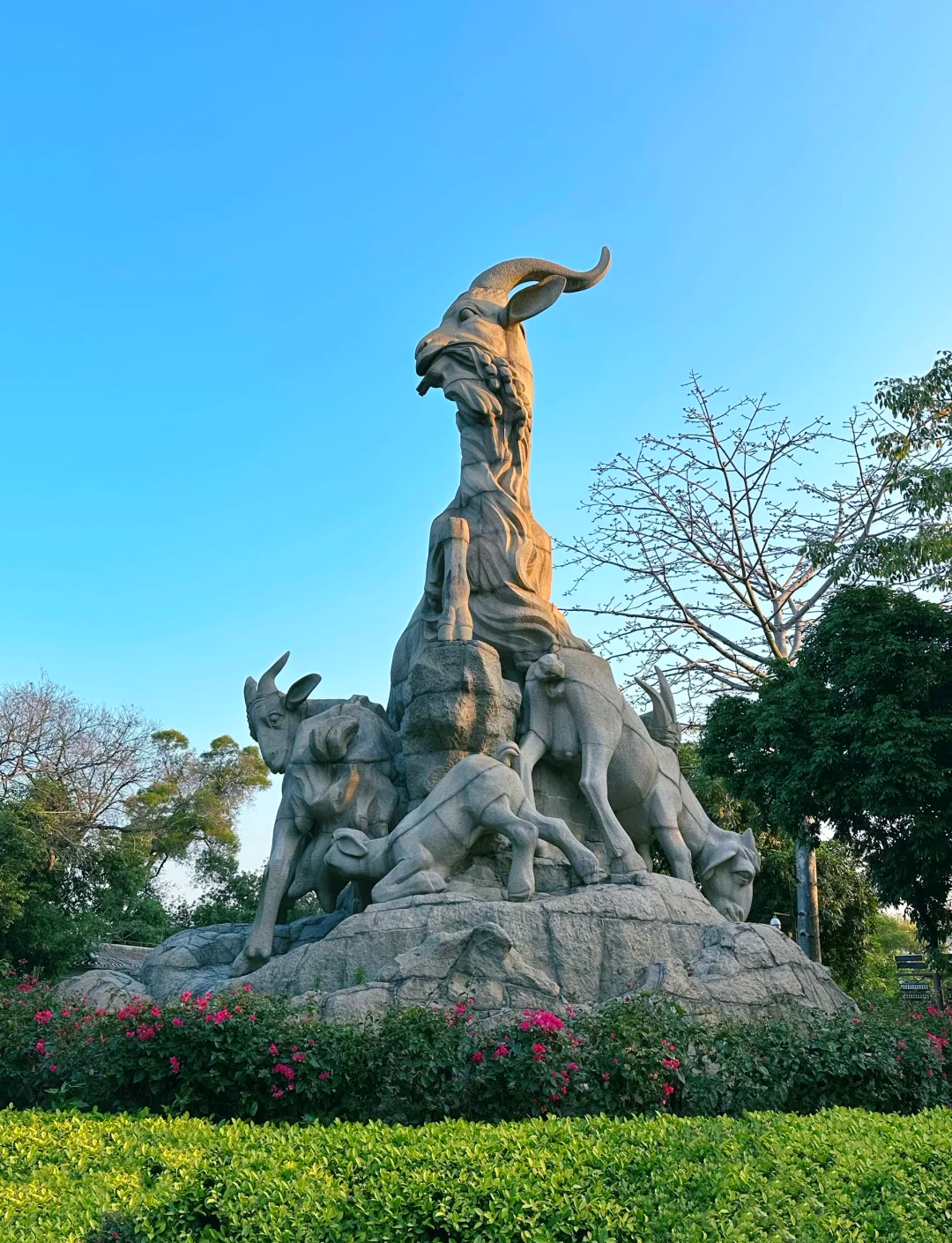 始建于1960年04月,已经成为了广州的标志,也是广州“羊城”这个名字的由来。五羊石雕源自一个美丽的传说,相传很久以前广州这里非常荒芜,人们也不得温饱,有五位仙人骑着口含谷穗的五只羊飞到了这里,把谷穗留给了广州人,祝愿这里年年五谷丰登,然后驾云腾空而去,羊则化为了石头,广州从此变成了富饶之地。
