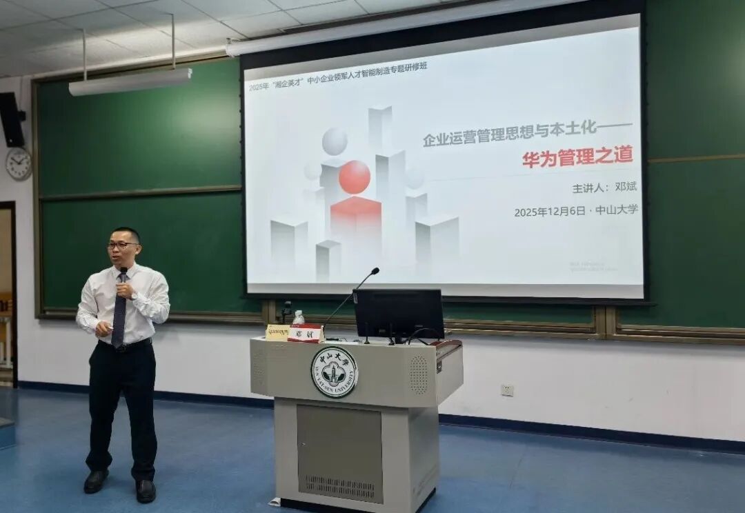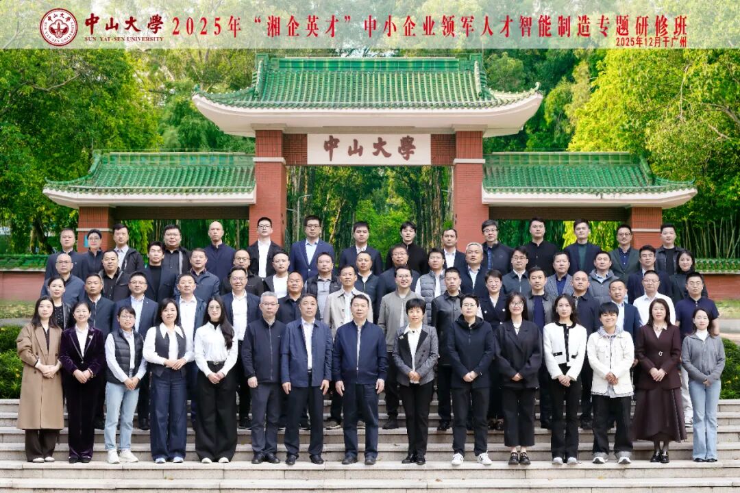 2025年12月6-9日,由湖南省工业和信息化厅主办、中山大学承办、湖南省中小企业协会协办的“2025年中小企业领军人才智能制造专题研修班”在广州中山大学正式开班。来自全省智能制造重点企业、专精特新“小巨人”企业及专精特新中小企业的董事长、总经理等高层管理者齐聚百年学府,开启智能制造专题学习之旅,为湖南“三高四新”战略落地与先进制造业高地建设注入人才动力。