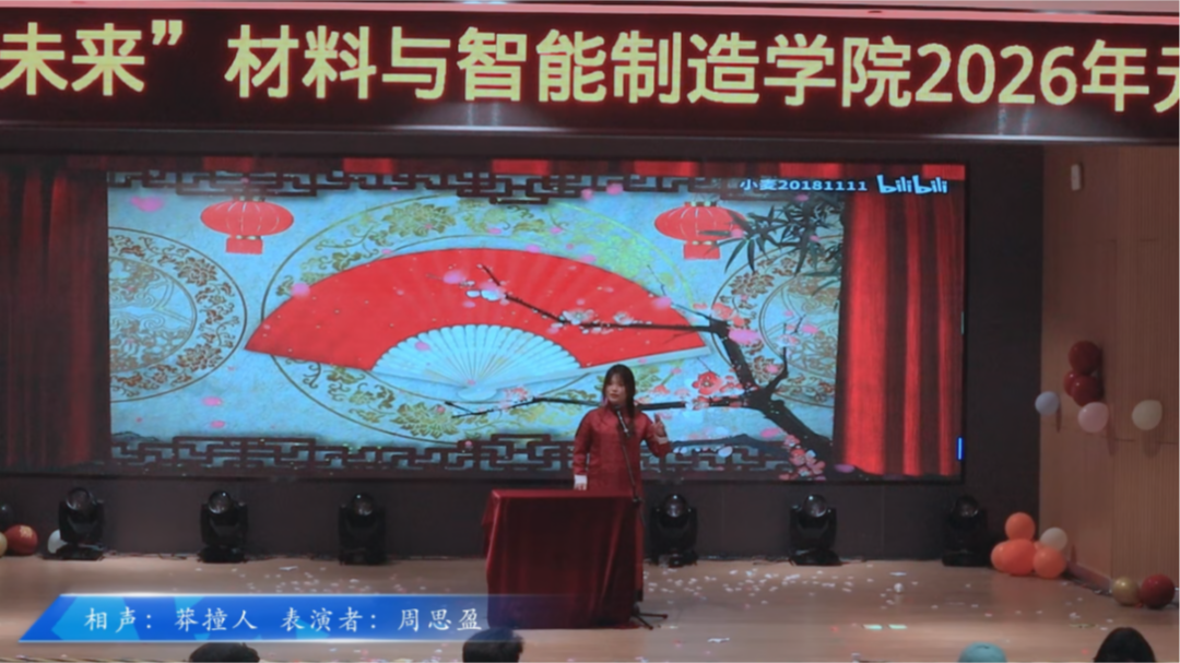 旧岁千祥皆如意,新年万事定称心。材料与智能制造学院2026年元旦联欢晚会在欢声笑语中圆满落幕,全院师生齐聚一堂,以歌舞、朗诵、小品等多元表演,共赴一场辞旧迎新的青春盛宴,以“材绘新章,智创未来”主题,书写属于大家的美好篇章。接下来跟着小材一起回顾元旦晚会的精彩瞬间。