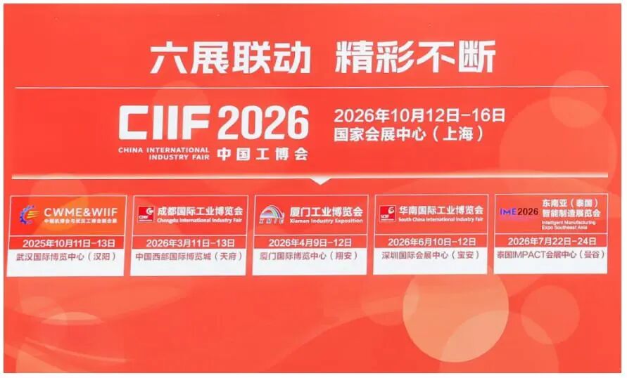 2026 年,中国工博会系列展全域启航。MWCS 作为其中的重要一环,将与成都国际工业博览会、厦门工业博览会、华南国际工业博览会、中国机博会暨武汉工博会,以及东南亚(泰国)智能制造展览会(IME)形成联动,共同构建一个覆盖全国、链接东盟的智能制造生态网络。