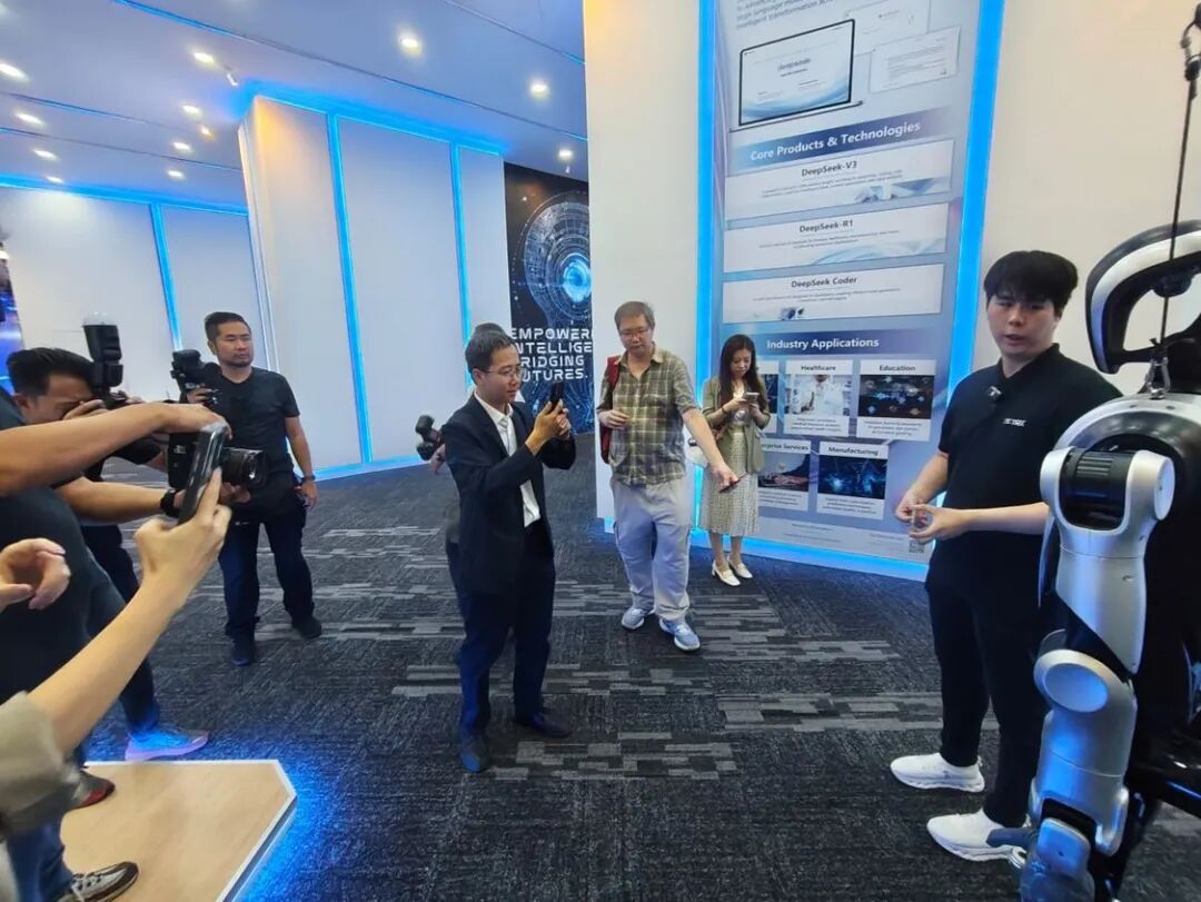 位于马来西亚八打灵再也市的中国—马来西亚人工智能创新合作中心内,阿里云、大疆、深度求索(DeepSeek)等十多家中国人工智能领军企业在此云集。