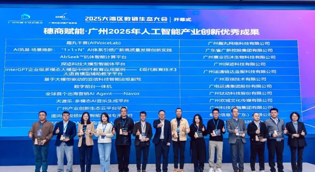 隆重揭晓“穗商赋能·2025年广州市区块链创新成果”、“穗商赋能·广州2025年人工智能产业创新优秀成果”及“2025大湾区数链生态大会数字先锋企业”年度榜单,并举行颁奖仪式。
