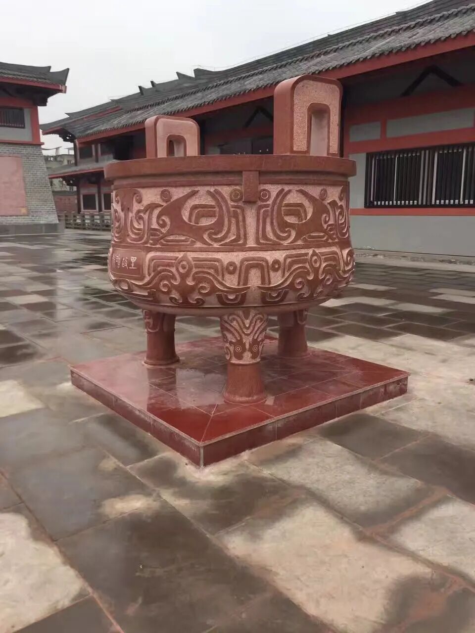 党史馆外使用的花岗石红色柱底基座