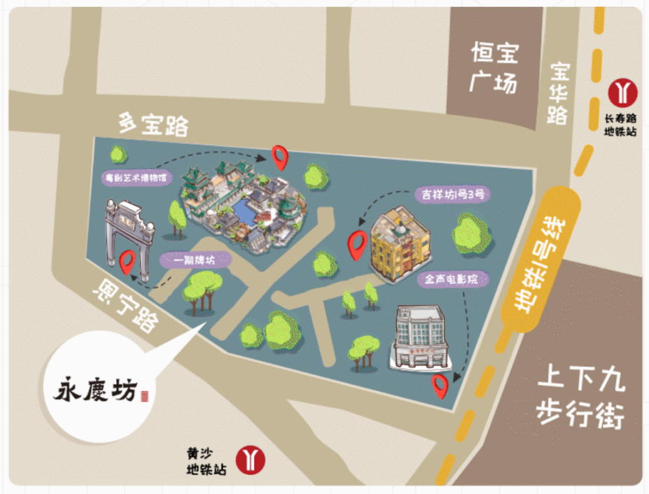 永庆坊位于广州中心,交通便利:广州地铁1\6号线直达;距白云机场约40分钟车程,距广州南站约20分钟;街区尺度宜人,步行即可抵达各活动点位;会议期间可提供定制接驳服务。