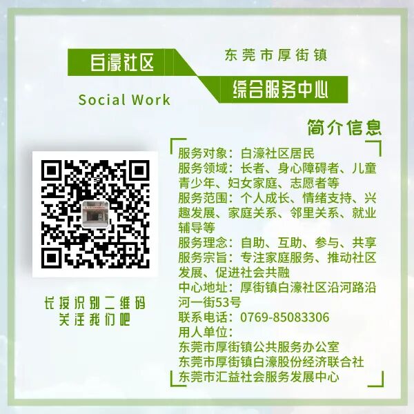 活动中,社工们还向居民发放了社工服务宣传手册,详细介绍了白濠社综的服务内容、服务对象等信息,进一步扩大了社工服务的知晓度。
