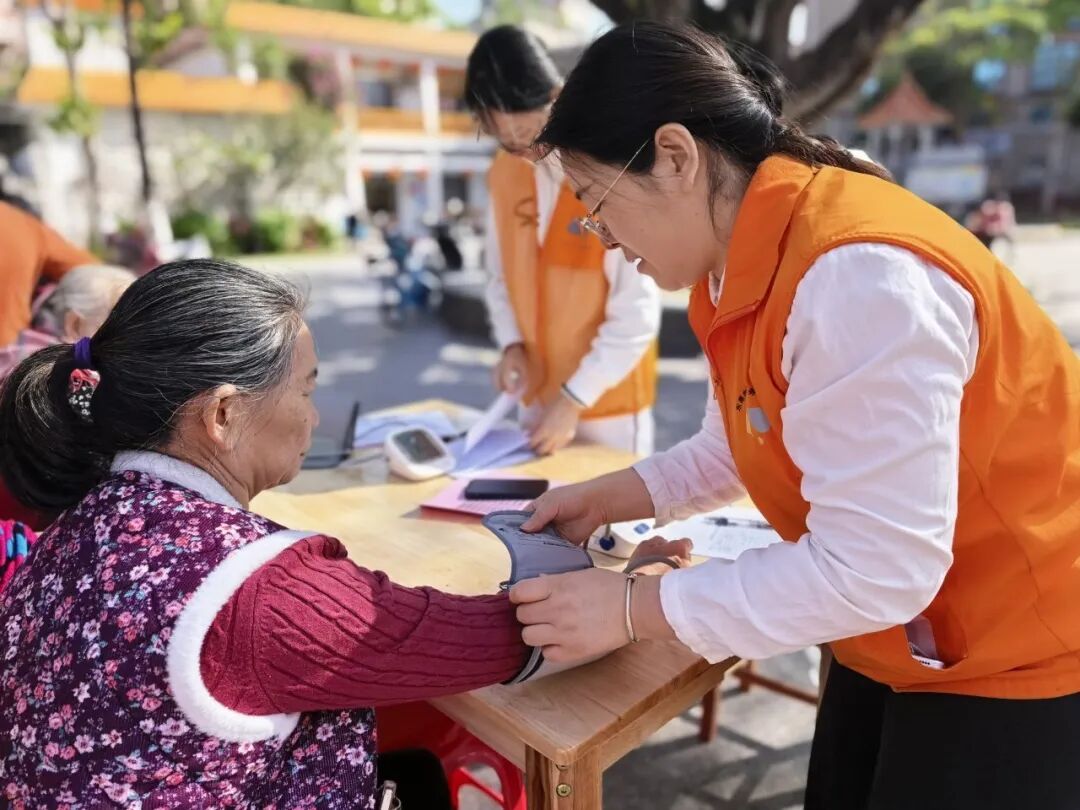 而“便民眼科检查”区域前,不少中老年居民有序排队,来自合作医院爱尔眼科的眼科医生耐心地为他们进行视力检测、眼底检查,并针对常见的眼部问题提供专业的健康指导和建议,让居民在家门口就享受到了贴心的医疗服务。“免费量血压”处同样排起了长队,社工与志愿者们分工协作,细心地为每一位居民测量血压,并详细记录数据。对于血压偏高或偏低的居民,他们还会结合日常饮食、作息等方面给出科学的健康提醒,叮嘱大家要关注身体变化,定期监测血压,养成良好的生活习惯。