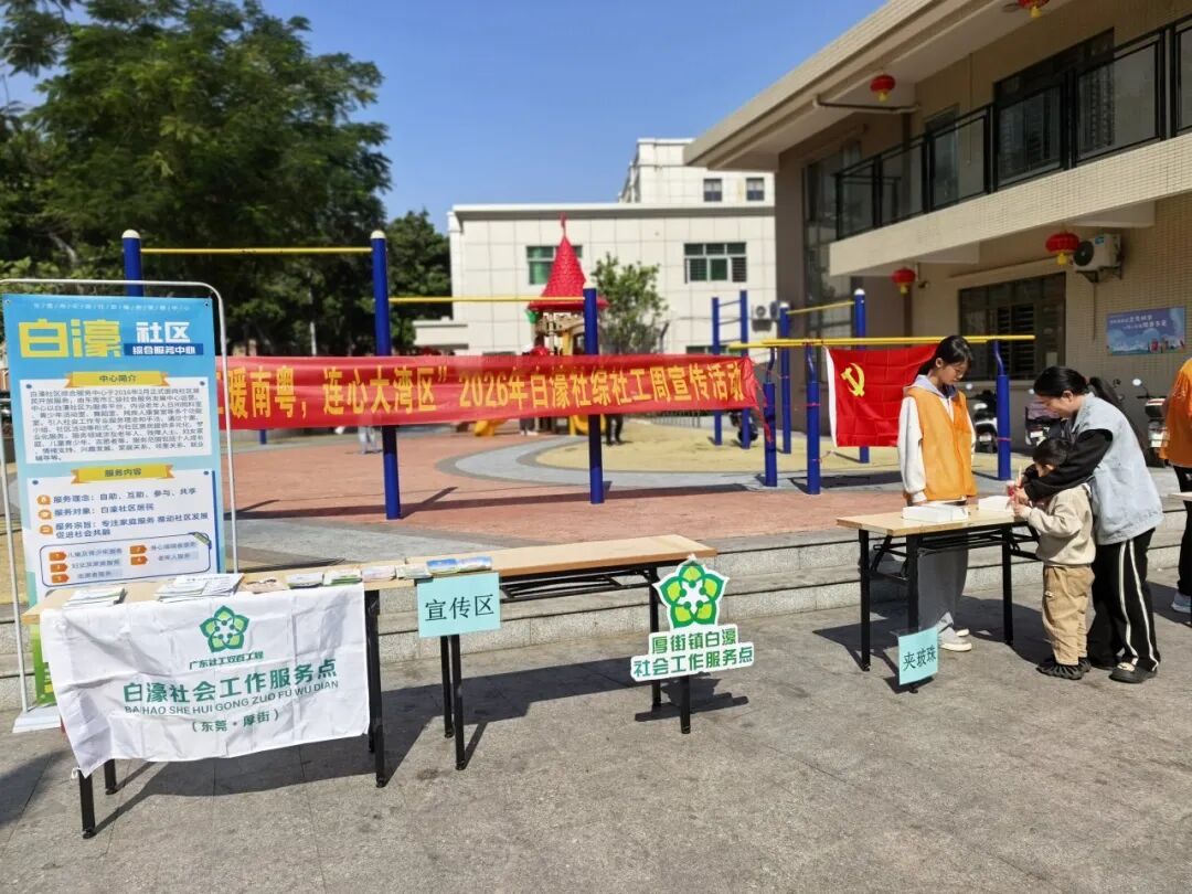 阳春三月,暖意渐浓。为进一步弘扬“奉献、友爱、互助、进步”的志愿精神,提升社会工作的社会认知度与影响力,2026年3月14日上午,汇益中心驻白濠社区综合服务中心举办了以“社工暖南粤,连心大湾区”为主题的社工周宣传活动。本次活动旨在通过丰富多彩的互动体验,让社区居民近距离了解社工服务,感受社工带来的温暖与关怀,共同营造和谐友爱的社区氛围,为大湾区的建设凝聚人心与力量。