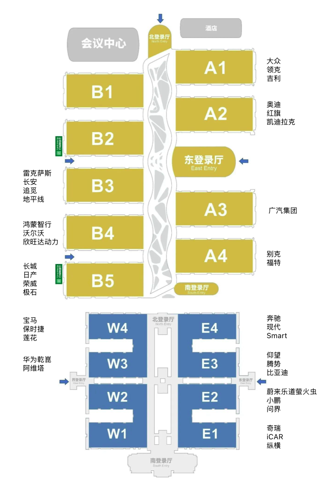基于展馆结构与品牌分布,我们也整理了一条从南向北的观展动线建议: