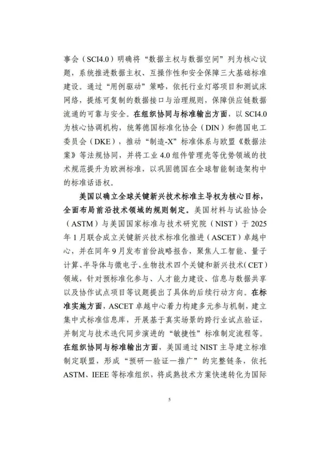 美国通过ASTM与NIST成立ASCET卓越中心,聚焦人工智能、量子计算等前沿领域,建立“预研—验证—推广”链条,推动敏捷标准制定,确保技术规则主导地位。