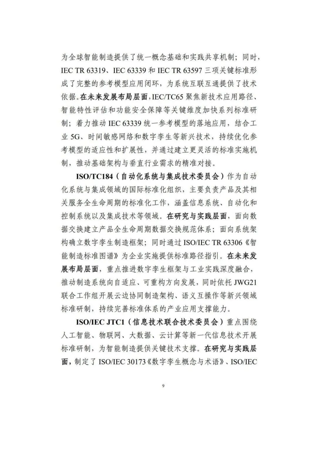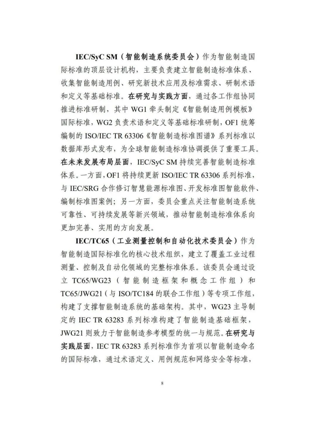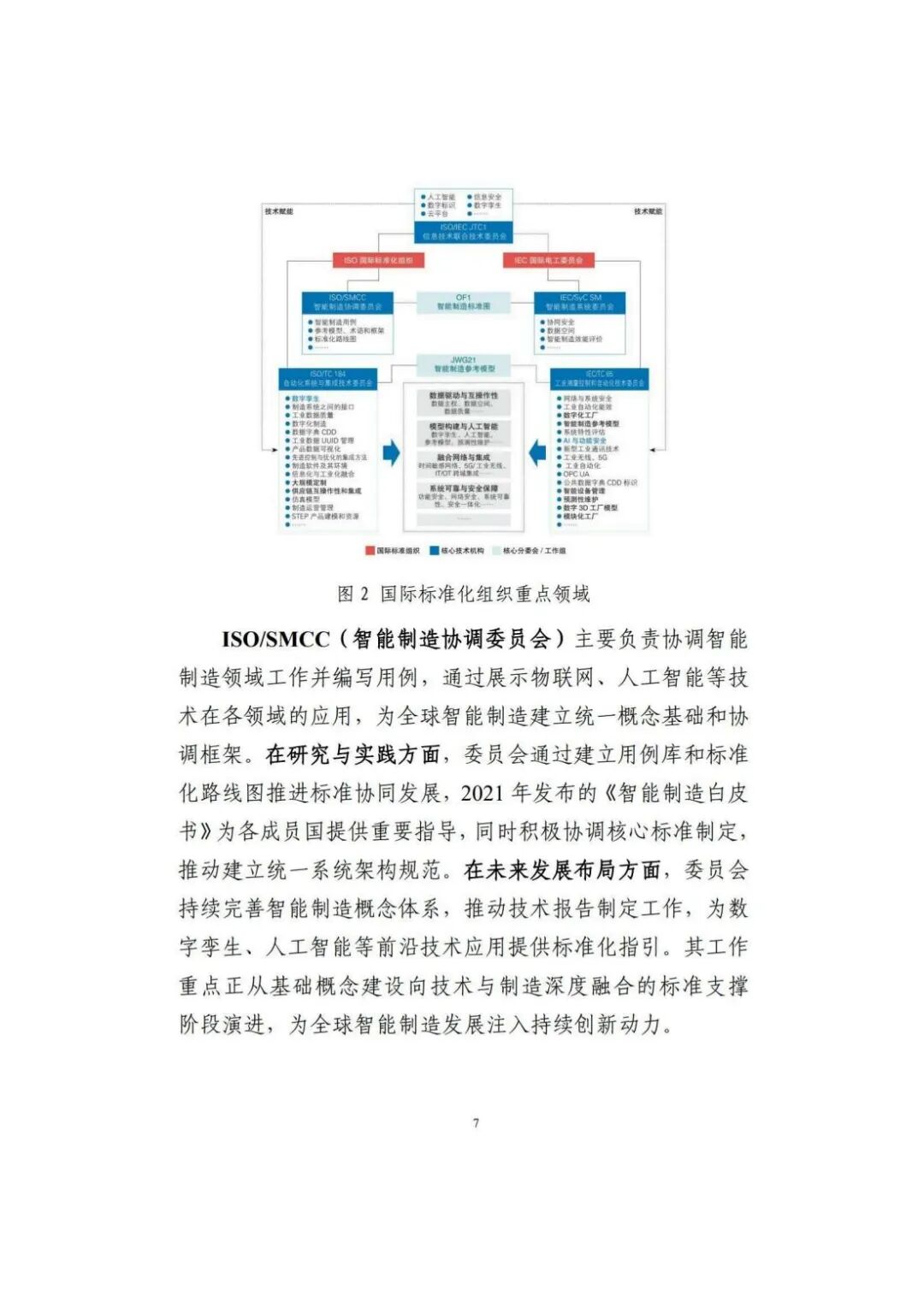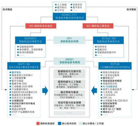 ISO、IEC等组织从框架建设转向关键技术攻关。例如,ISO/SMCC通过用例库统一全球概念,IEC/TC65构建智能制造基础框架,ISO/IEC JTC1则推动人工智能、数字孪生等IT标准与制造融合。