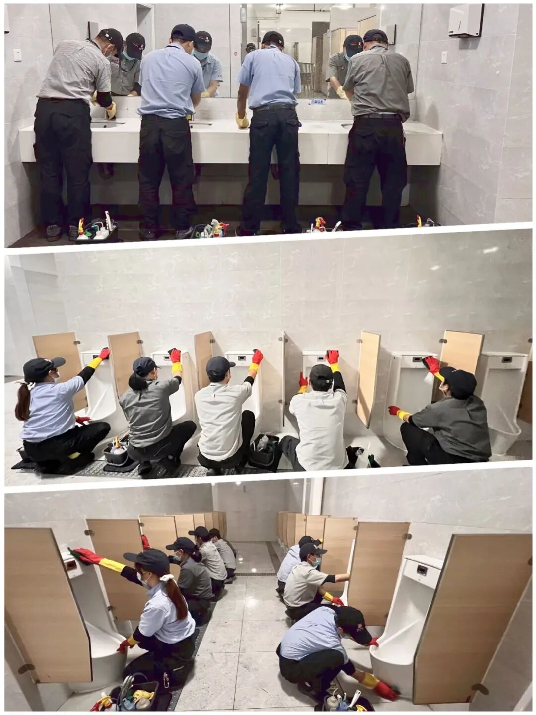 航展期间,史伟莎珠海团队对航展馆内各卫生间展开全面深度清洁与消毒。技术员们以高度的责任心,对马桶、尿缸、洗手盆及水龙头角落、瓷砖边缘、洁具出水孔等各个细节进行深度消毒与抛光打磨,力求做到无死角清洁。经过大家的努力,卫生间环境焕然一新,成为展示航展文明形象的重要窗口,为参展者营造出舒适宜人的如厕环境。