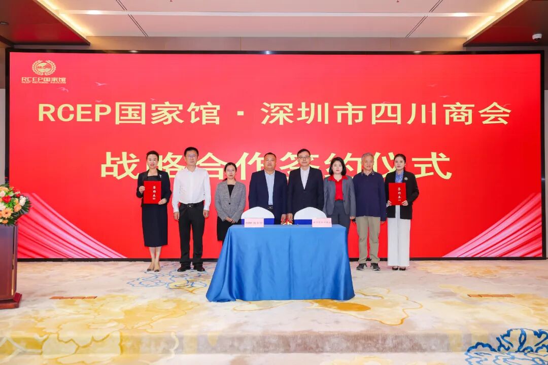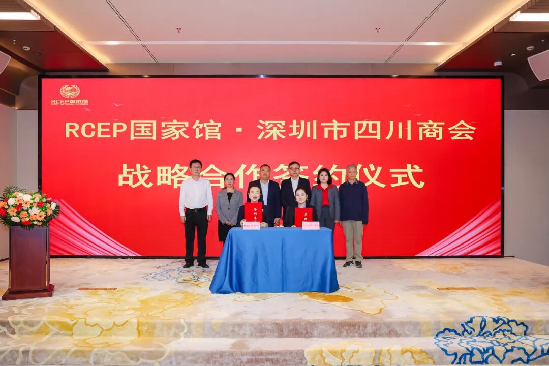 在全场嘉宾的共同见证下,本次推介会迎来了重磅的战略合作签约环节,以务实合作凝聚企业出海共识,以签约落地激活RCEP市场开拓动能。签约前,深圳市四川商会执行会长张松明上台致辞,他表示,RCEP协定生效以来,区域内贸易投资自由化便利化水平持续提升,为企业出海带来了前所未有的发展机遇。此次与RCEP国家馆达成战略合作,是商会发挥桥梁纽带作用、赋能会员企业出海的重要举措,未来将充分整合商会资源与国家馆平台优势,搭建更多精准对接、务实高效的企业出海合作场景,助力会员企业深度融入RCEP区域产业链供应链,把握政策红利实现高质量出海发展。