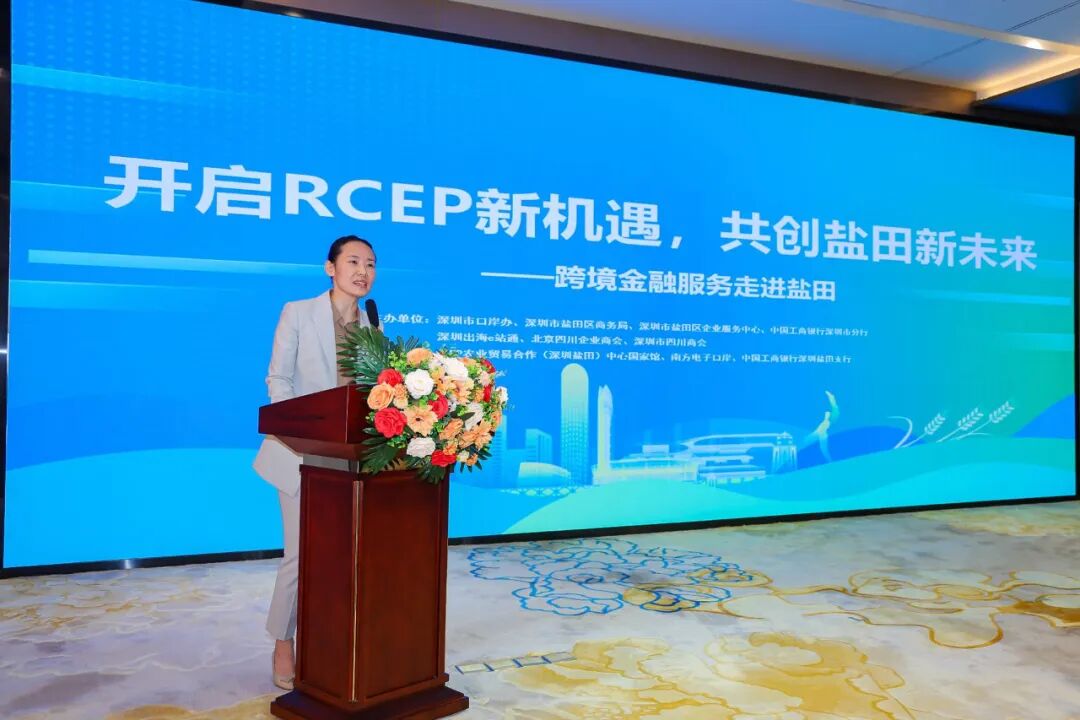 中国工商银行深圳市分行国际业务部副总经理信晓征带来“跨境金融服务走进盐田”专项宣讲,聚焦企业出海过程中的融资难、结算繁、汇率波动风险大等核心痛点,详细介绍了工行专为出海企业量身打造的跨境金融解决方案。从面向中小微外贸企业的普惠信贷产品、针对大型出海企业的定制化融资服务,到高效便捷的跨境支付结算系统、多元化汇率避险工具,再到跨境人民币结算推广政策与实操案例,信晓征的分享覆盖了企业出海全流程的金融需求,以专业的金融服务为企业出海保驾护航,让金融活水精准滴灌出海企业,为企业开拓RCEP市场提供坚实金融支撑。