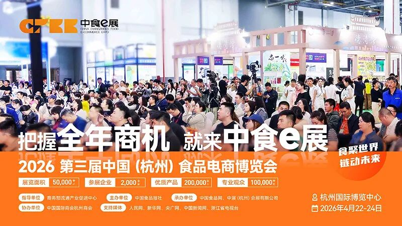 📝简介:自2024年4月首届中国(杭州)食品电商博览会在杭州国际博览中心成功举办以来,这场聚焦食品电商的行业盛会已连续成功举办两届。展会涵盖主题论坛、行业交流、展览展示和渠道对接等丰富内容,深度总结了电商发展的前沿经验与创新模式,成为推动行业交流与合作的重要平台。前两届盛会已圆满落幕,为食品电商领域注入了强劲动力。第三届中国(杭州)食品电商博览会将延续这一成功模式,2026第3届中国(杭州)食品电商博览会于2026年4月22日在杭州国际博览中心盛大开启!让我们共同期待这场电商盛宴的再次到来,见证杭州持续引领新电商发展的辉煌篇章。