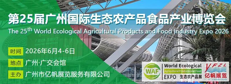 📝简介:WAF 2026第25届广州国际生态农产品食品产业博览会(简称:WAF广州生态农产品展)将于2026年6月4-6日在广交会展馆隆重举办!