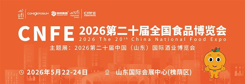 📝简介:CNFE 2026第二十届全国食品博览会,将于2026年5月22-24日在济南市山东国际会展中心(济南市槐荫区)举办。全国食品博览会作为国内重要的酒食餐行业专业品牌展会,已立足山东省会济南市连续成功举办十九届(每年一届),展会品牌、规模、实效均名列国内同类型展会前茅,是酒食餐企业开拓市场、品牌展示、行业交流的重要价值平台,也是酒食餐行业为数不多通过全球展览业协会UFI认证的高品质专业展会。本届展会将为酒食餐产业链上中下游企业间搭建起优质的洽谈贸易、交流合作平台,切实助力企业市场开拓,为企业2026年实现良好的经营效果实现良好开端,奠定坚实基础,更为行业发展注入强力动能与信心。