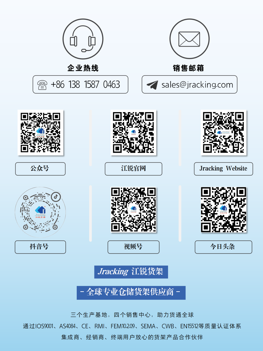 Jracking江锐货架作为全球仓储货架制造领域的实力品牌,始终专注于为全球客户提供高品质、高承载、高稳定性的仓储解决方案。凭借卓越的品质和创新的设计,产品远销全球90多个国家和地区,经销商网络遍布全球,更能提供一站式海外项目落地服务。