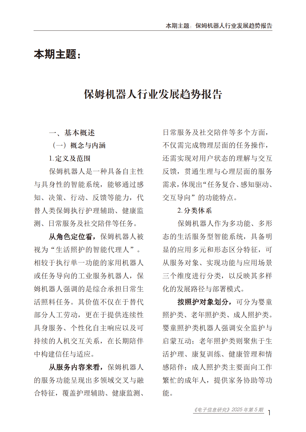 导读:赛迪智库发布的《2025年保姆机器人行业发展趋势报告》,系统梳理了保姆机器人行业的发展现状、技术体系、趋势挑战及对策建议,为行业规范化发展提供了全面指引。