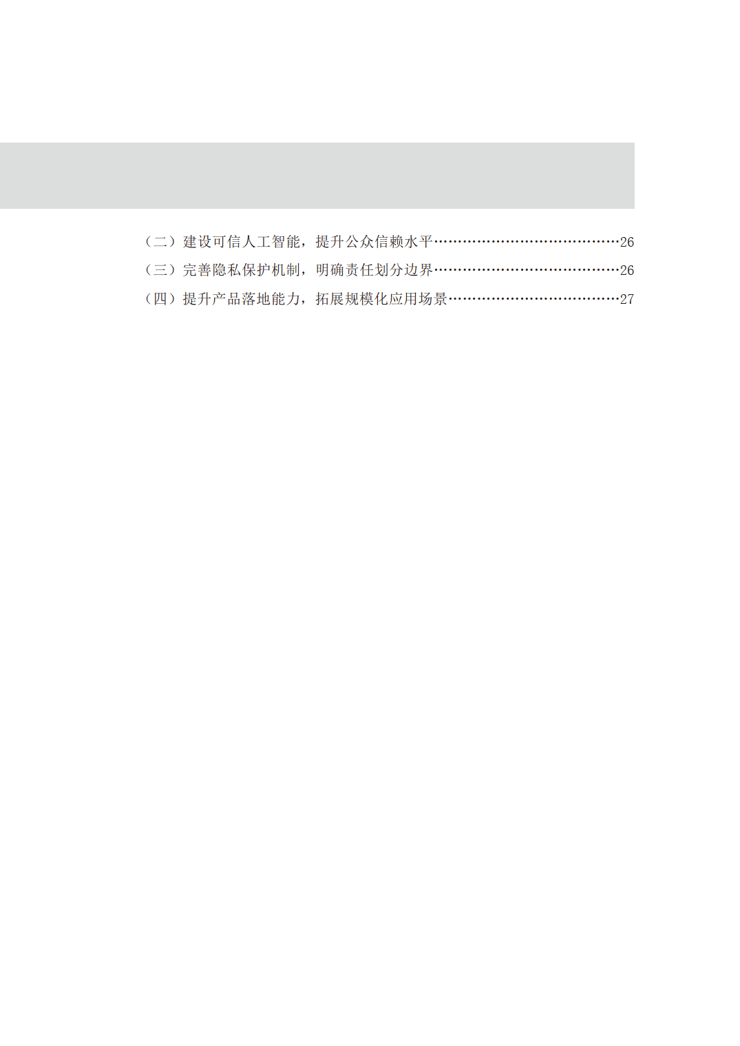 针对上述挑战,报告提出四项对策建议:构建高质量数据集,通过开放共享场景数据与发展合成数据技术,提升模型泛化能力;建设可信人工智能,加强算法透明性与可解释性研究,完善安全评估与认证体系;完善隐私保护机制,制定专项法规明确数据管理规则,推广隐私增强技术应用;提升产品落地能力,推动产学研协同创新,构建行业标准体系,探索租赁、共享等新型商业模式,降低用户使用门槛。