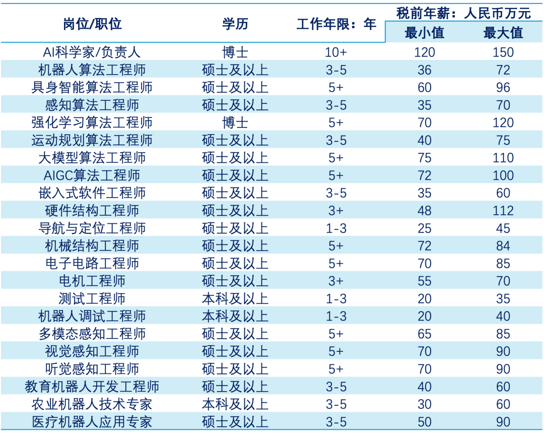 预计2026年,我国机器人行业人才核心岗位/职位跳槽薪酬涨幅将会在20-30%区间,具体薪酬如下图: