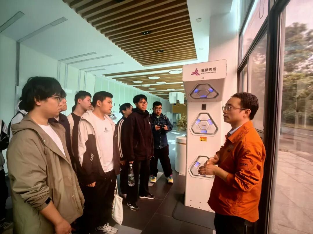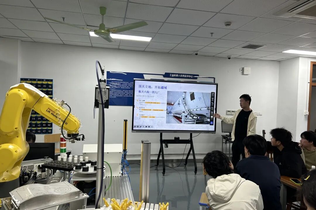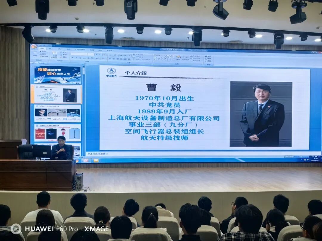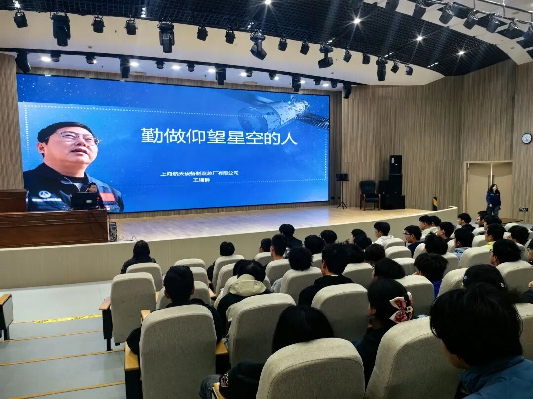 在火箭舱体总装车间,激光定位线如一道道红色琴弦,在银色箭体上勾勒出精准轨迹;工程师手持数字化终端,执行毫米级的对接校准。同学们透过防爆玻璃,凝视机械臂与人工协同的“精密之舞”,在焊接火花中真切感受到“航天精神”不仅是口号,更是每一道工序中极致的坚韧与严谨。 大国工匠王曙群、曹毅的讲座,更让“航天精神”从书本走入心灵。他们用亲身经历讲述“一辈子做好一件事”的执着,让同学们深刻理解:工匠之道,在于敬畏,在于坚守。