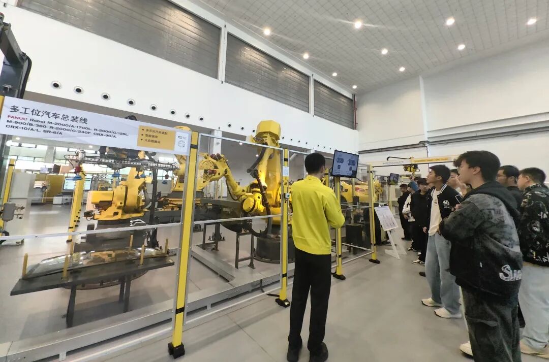 走进发那科智能制造体验中心,仿佛步入工业4.0的实景舞台。调酒、喷涂、装配、检测——各式机器人如臂使指,精准高效。同学们近距离观察工业机器人、协作机器人的作业实况,惊叹于其在汽车、电子、医疗等领域的广泛应用。在这里,机器人不仅是机器,更是“未来同事”。它们以0.02毫米的重复定位精度,不知疲倦地稳定运作,重新定义“生产力”。有学生感叹:“原来智能制造,是技术与艺术的双重极致。”