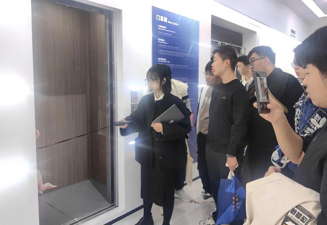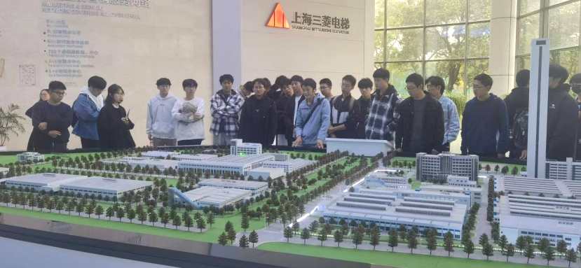 同学们参观了产品展示厅、培训中心,走进钣金车间、金工车间、曳引车间等场所,真实感受真实工作氛围,对三菱电梯的规模和产品技术有了更为直观、深入的认识。