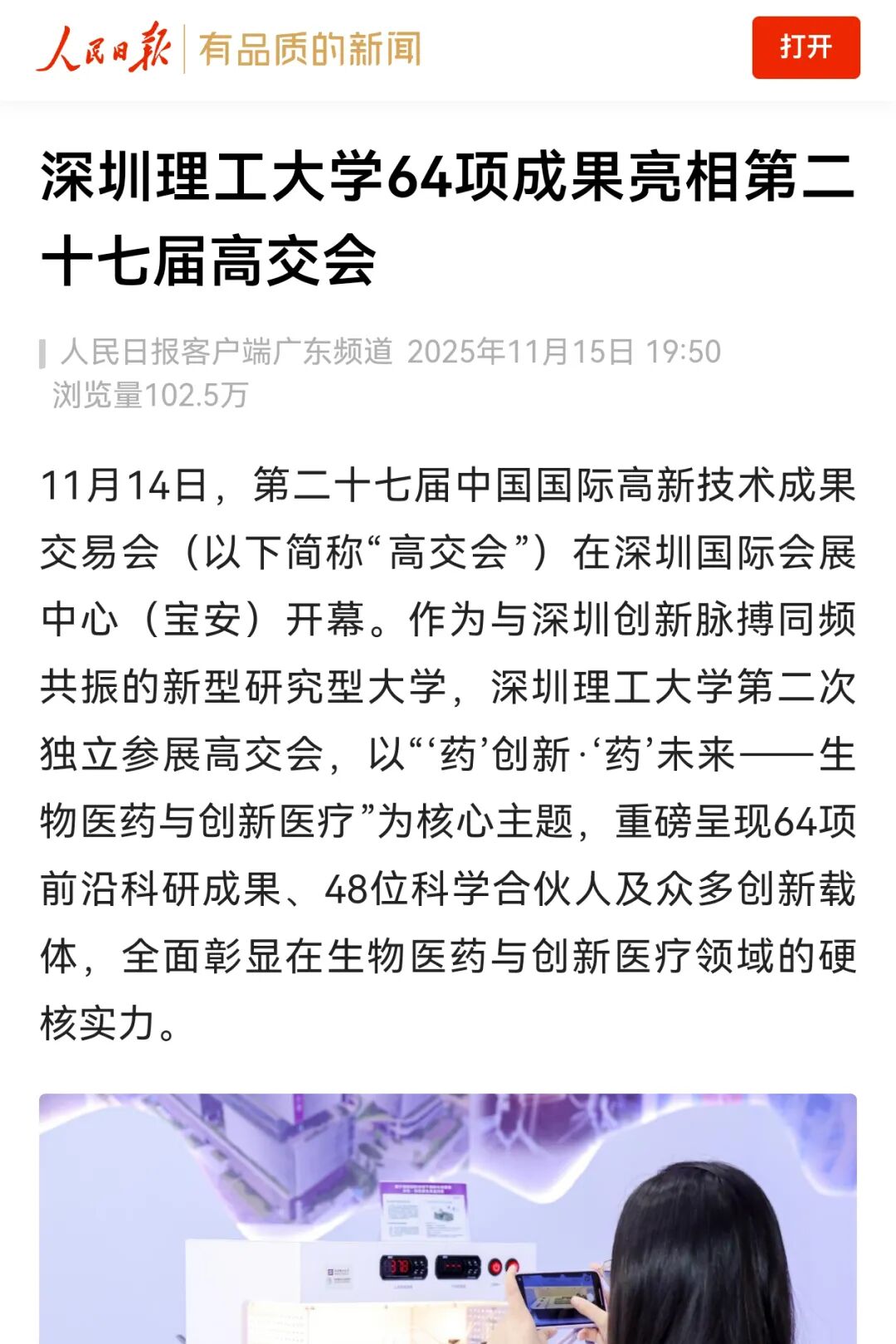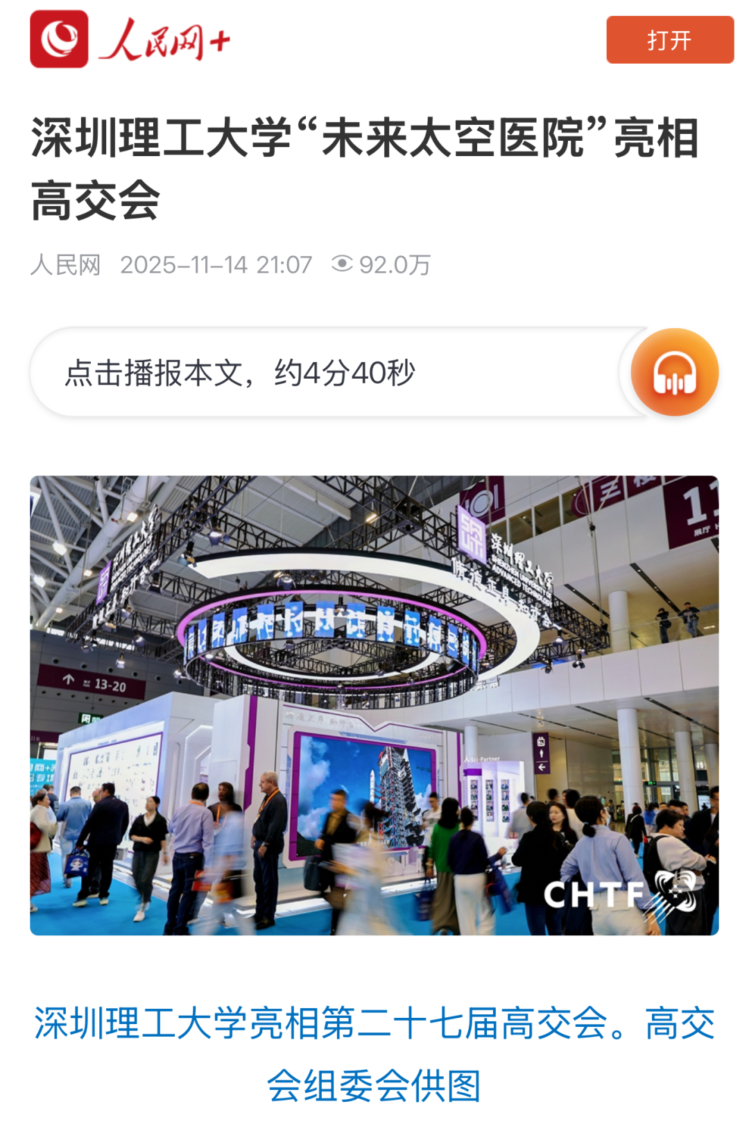 展会期间,深圳理工大学相关内容总阅读量近1000万次,累计收获63家媒体报道、转载442次。