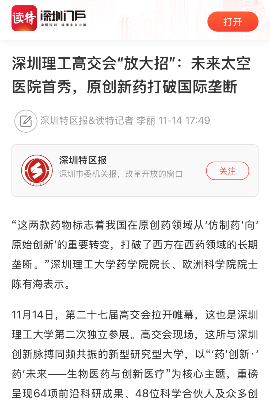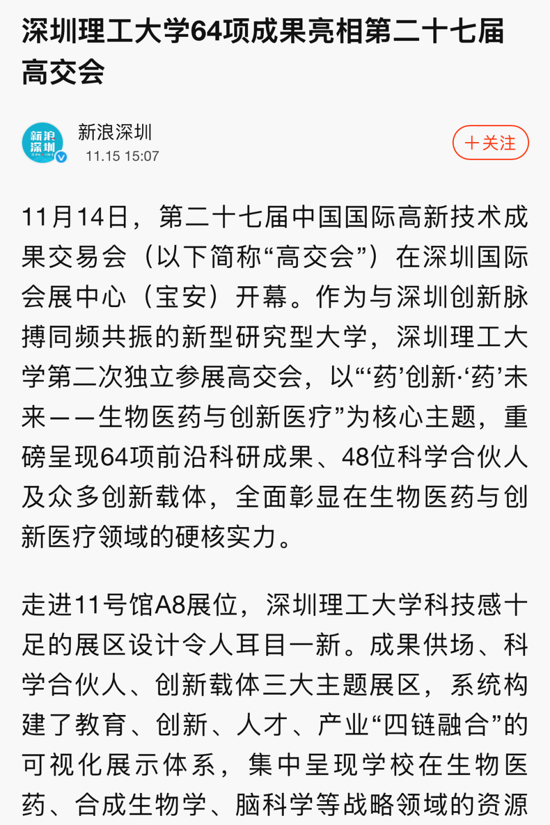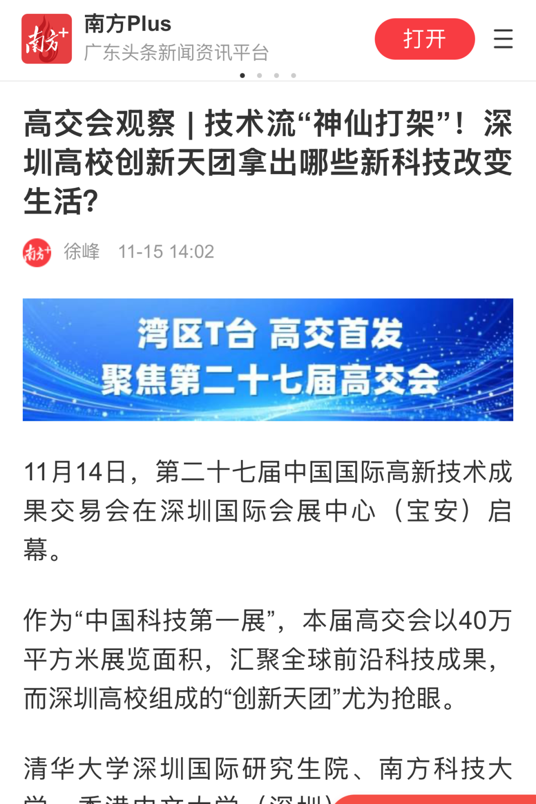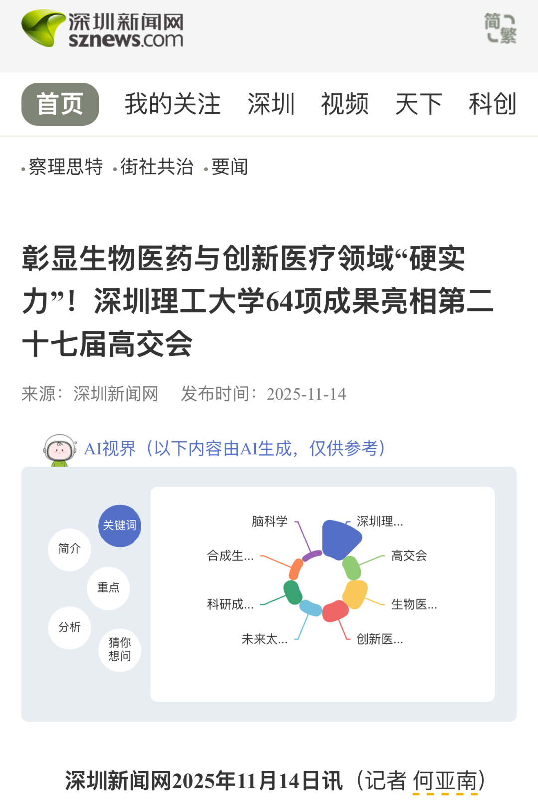 深圳理工大学多个亮点新闻受到媒体关注报道: