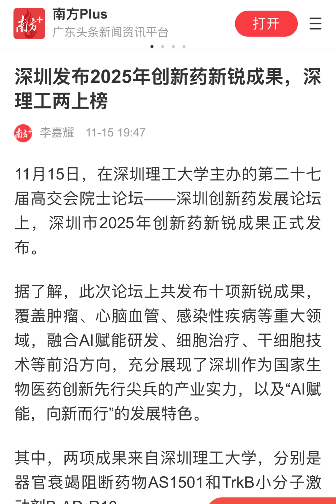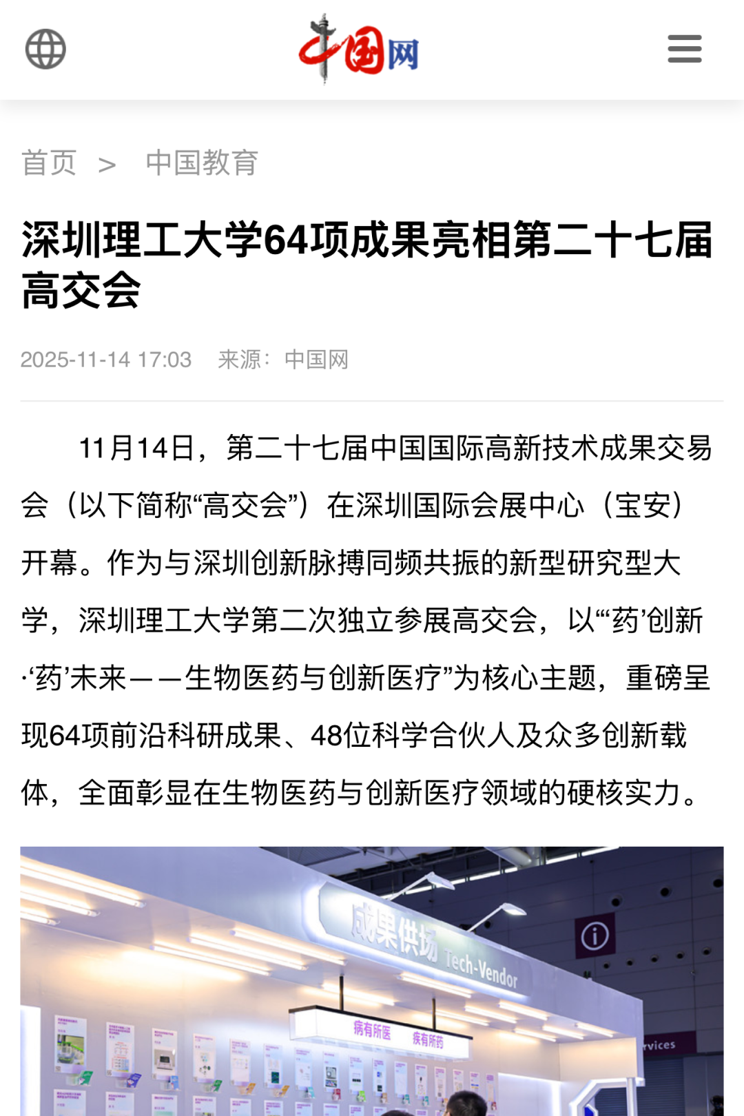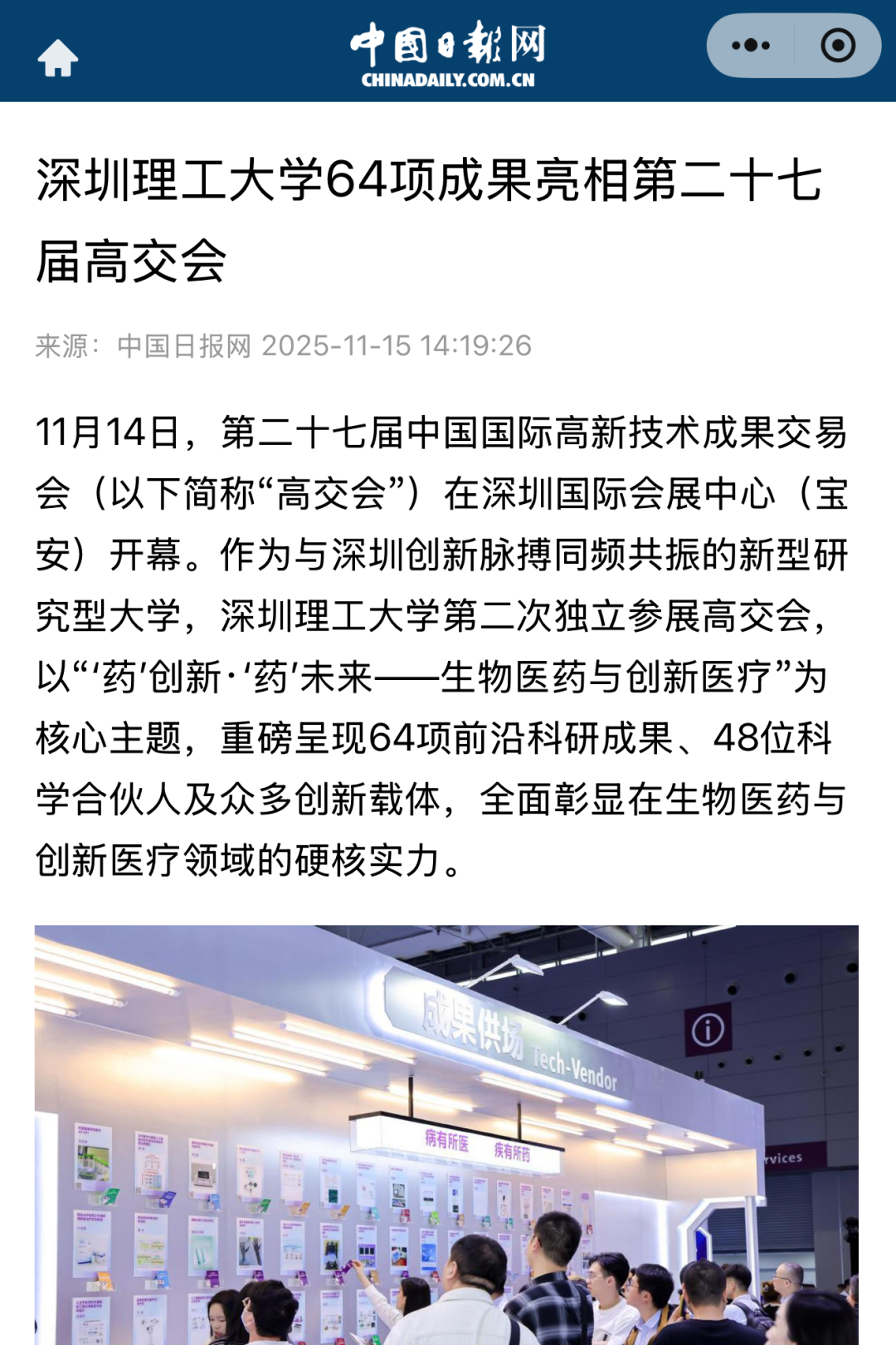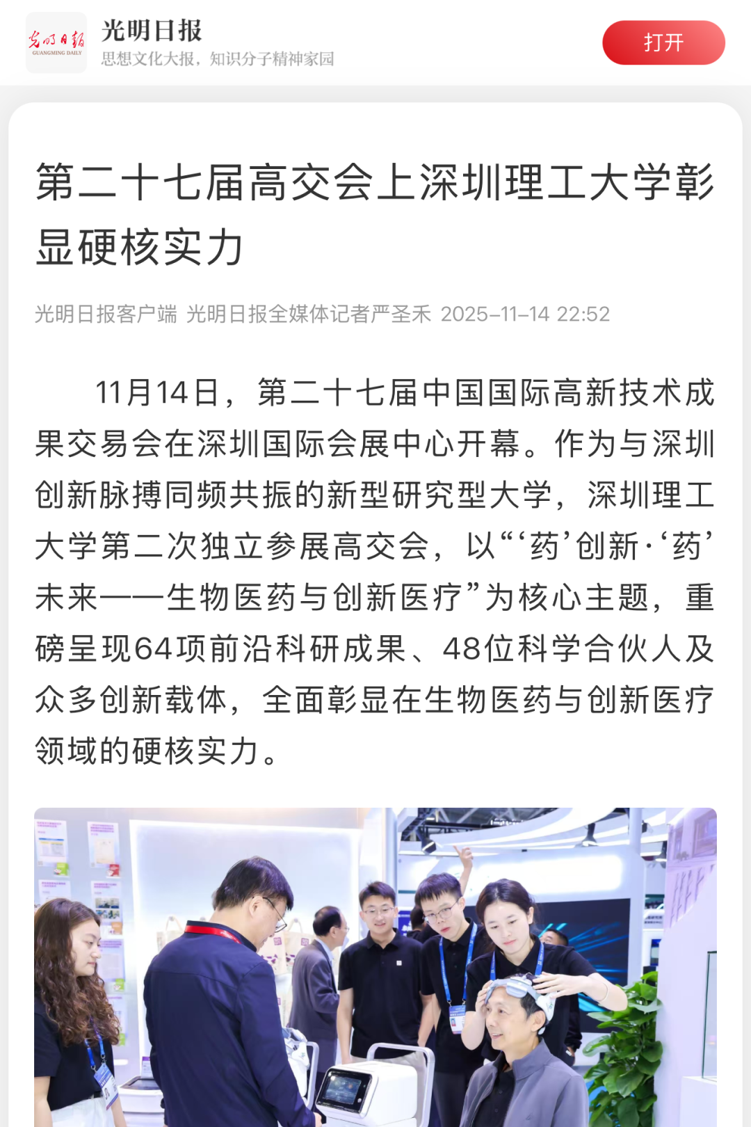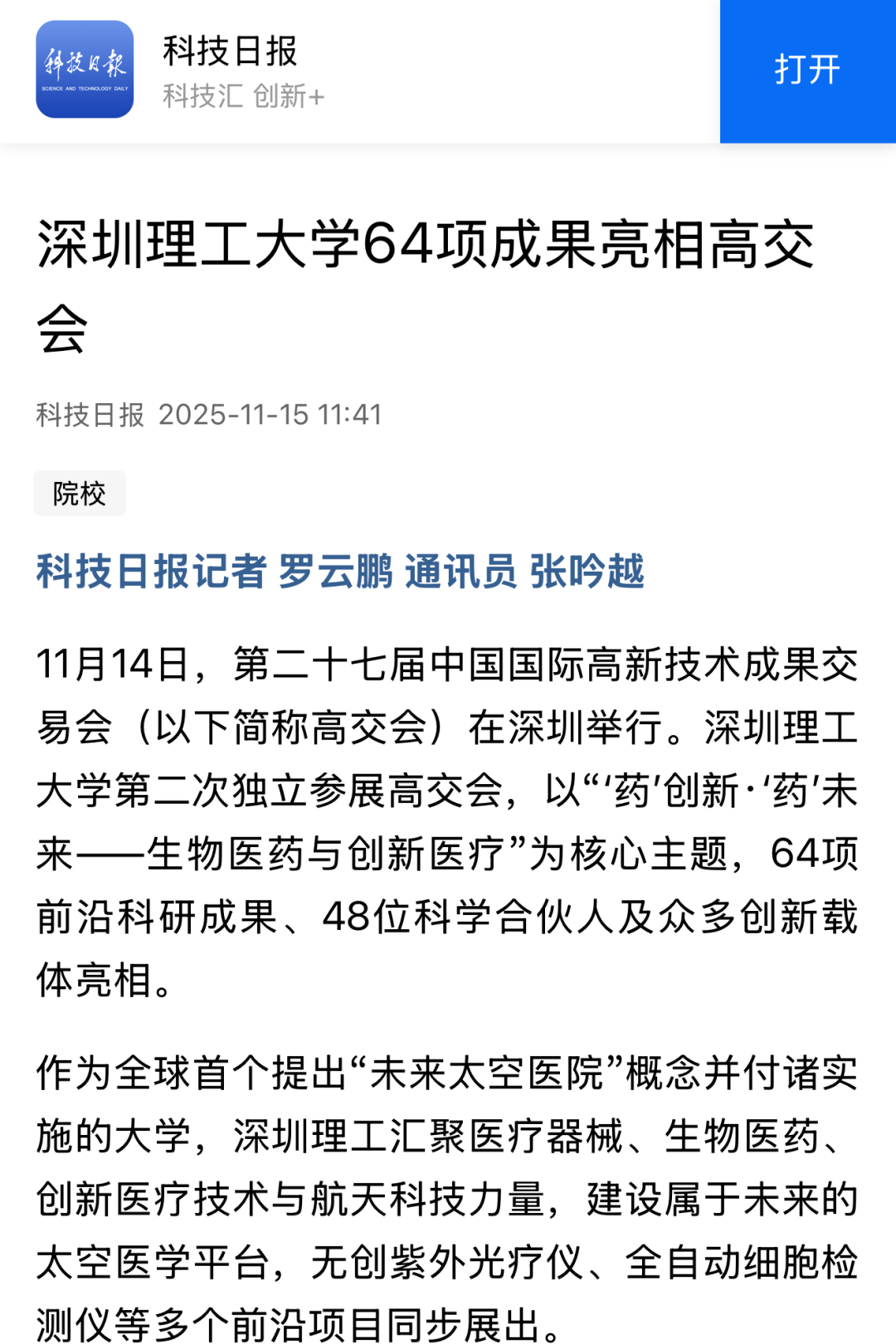 深圳理工大学多个亮点新闻受到媒体关注报道: