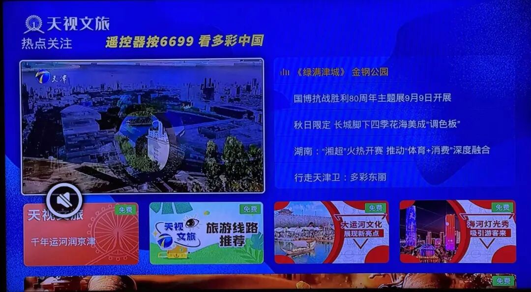 按遥控器数字键“6699”即可进入文旅专区