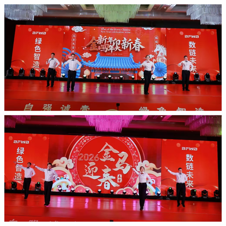 联欢会会在温暖而充满力量的结束语中圆满完成。回顾2025,北方微波人用汗水书写答卷;展望2026,全体同仁将继续秉持“绿色制造,数链未来”的理念,在微波技术创新之路上策马扬鞭,勇毅前行。