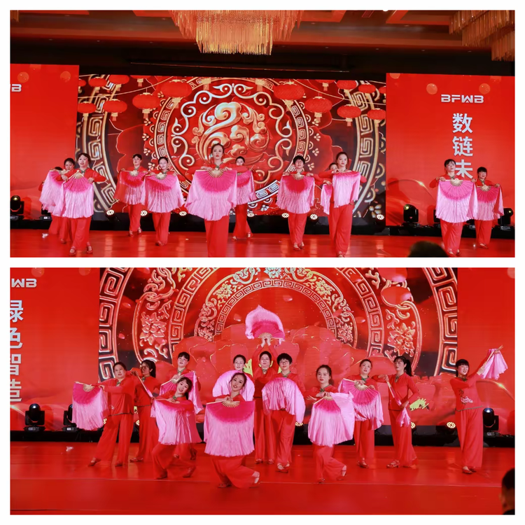 《百花齐放 万紫千红》等舞蹈美轮美奂,象征着公司业务生机勃勃、多元发展的繁荣景象。