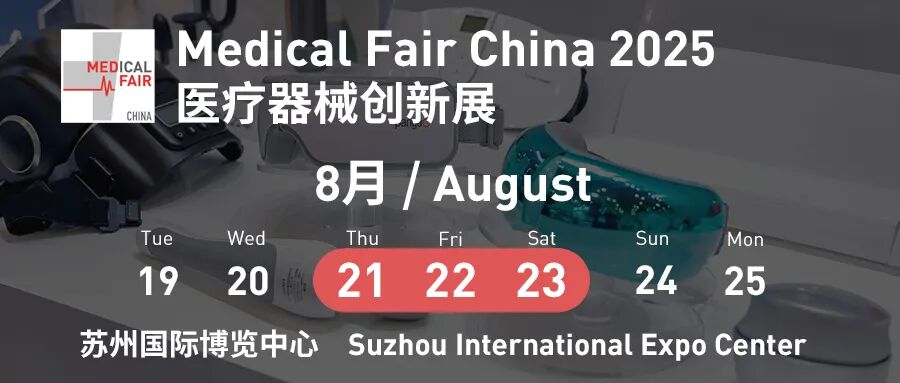 为了促进行业间更多的交流与合作,进一步优化展会体验,医疗器械创新展 Medical Fair China 将调整至 2025年8月21-23日开展(比原定日期延后1天),展会地点保持不变。