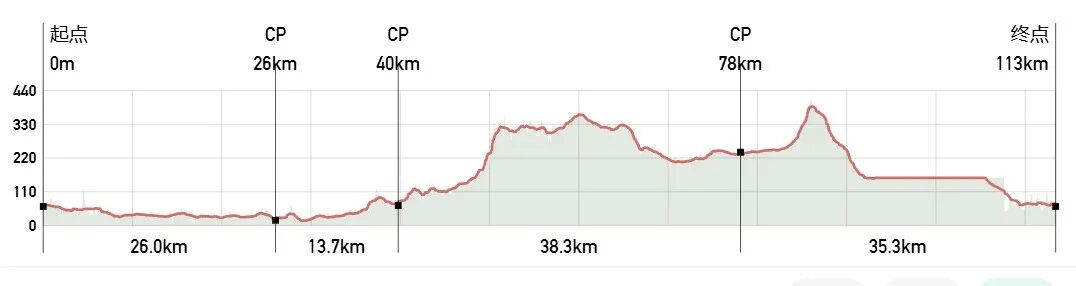 轨迹导入不同码表和APP时,爬升数据会有差异。实际全线里程为113公里,爬升约1200米,大概是1-2个3级坡,1个4级坡。