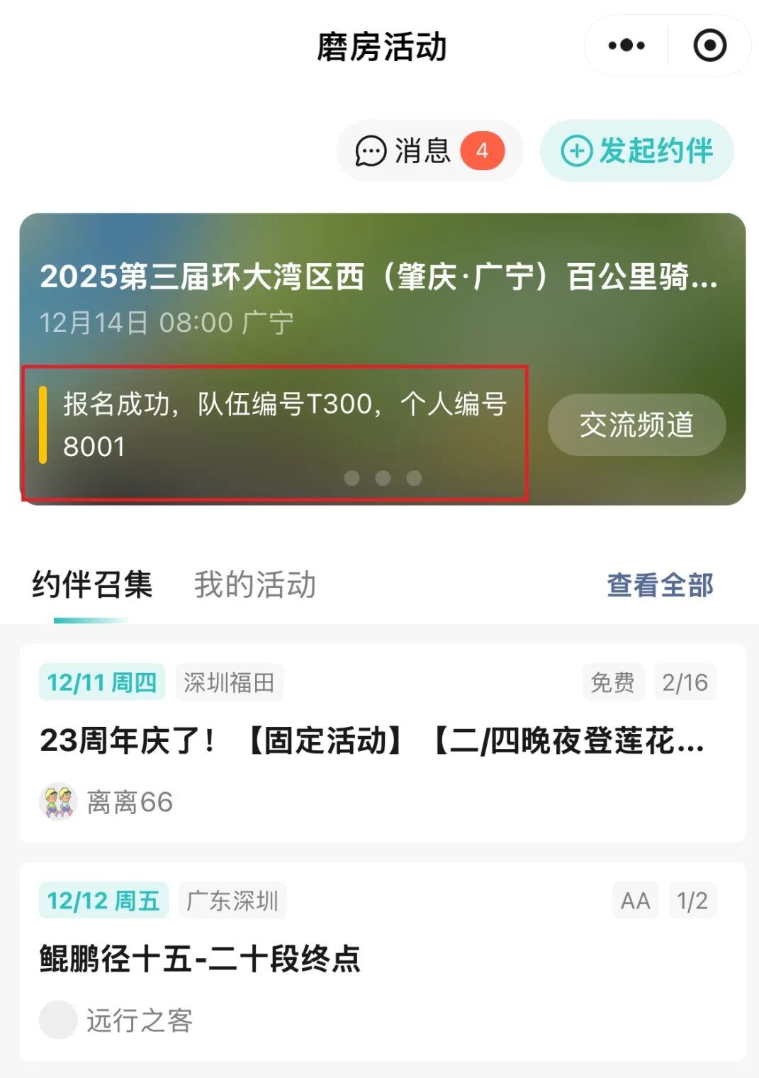1、队长打开【微信小程序:磨房活动】,找到自己的队伍编号,根据编号到相应的签到帐篷进行签到。