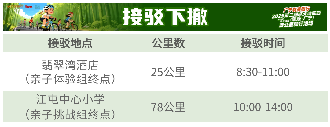 组委会在线路终点(翡翠湾酒店)设有大巴接驳车,返回到活动起点(广宁体育中心)。