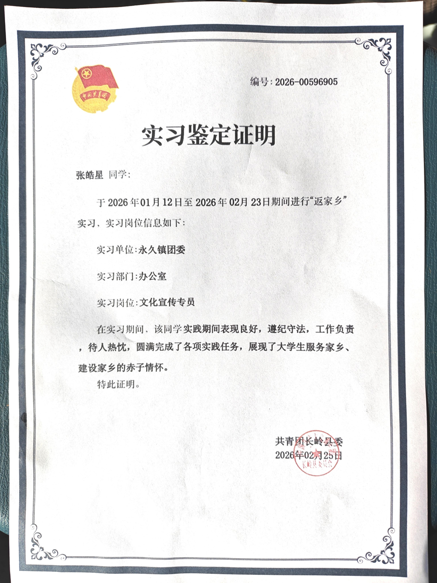 此次返家乡社会实践,我以文化宣传专员的身份在乡镇基层开展工作,在实践中受教育、长才干、作贡献。在参与文案撰写、活动策划、政策宣传、新媒体运营等工作过程中,我的文字表达、组织协调和沟通服务能力得到全面锻炼,进一步提升了务实做事、认真负责的工作态度。在深入基层、贴近群众的过程中,我真切感受到基层工作的重要意义,深刻认识到文化宣传在凝聚人心、弘扬文明、推动乡镇发展中的重要作用。这段实践经历让我更加了解家乡、热爱家乡,增强了社会责任感和时代使命感,也为今后走向社会、服务基层积累了宝贵经验、奠定了坚实基础。