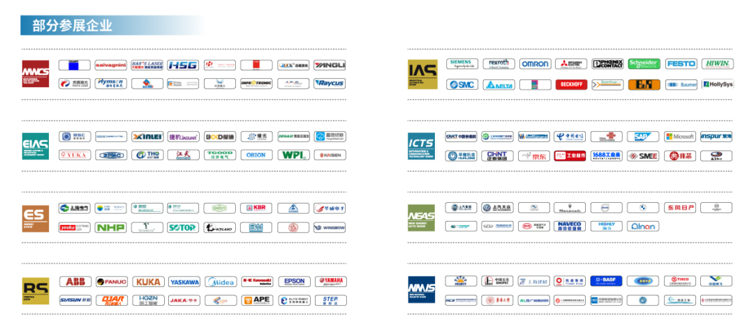 9大专业展:MWCS数控机床与金属加工展,IAS工业自动化展,RS机器人展,GLCS绿色低碳与,工业节能配套展,ICTS工业新一代信息技术与应用展(FTIS空天陆装备展),ES智慧能源展,STIS科技创新展和NMIS新材料产业展,