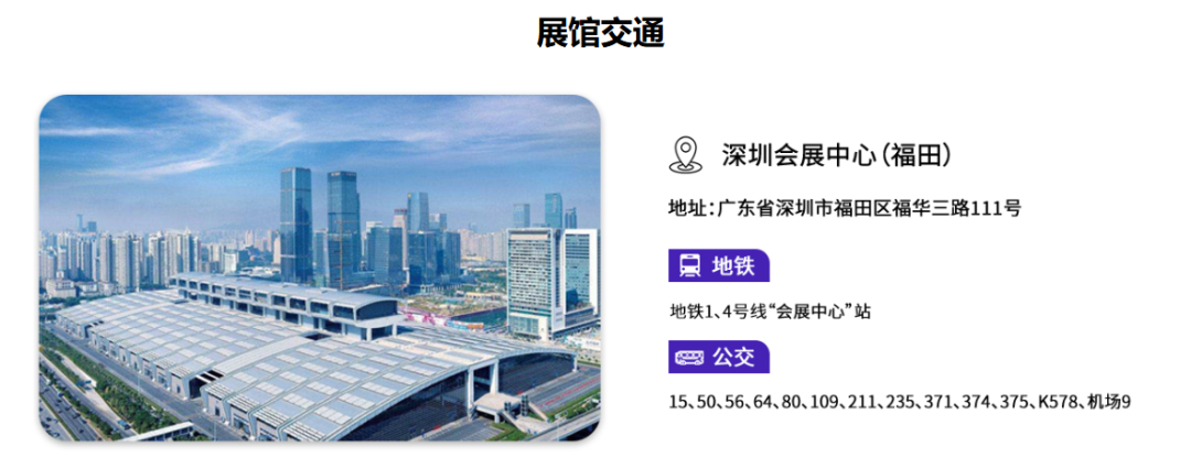 地点:地址:广东省深圳市福田区福华三路111号,地铁请导航至1号线和四号线深圳会展中心站。