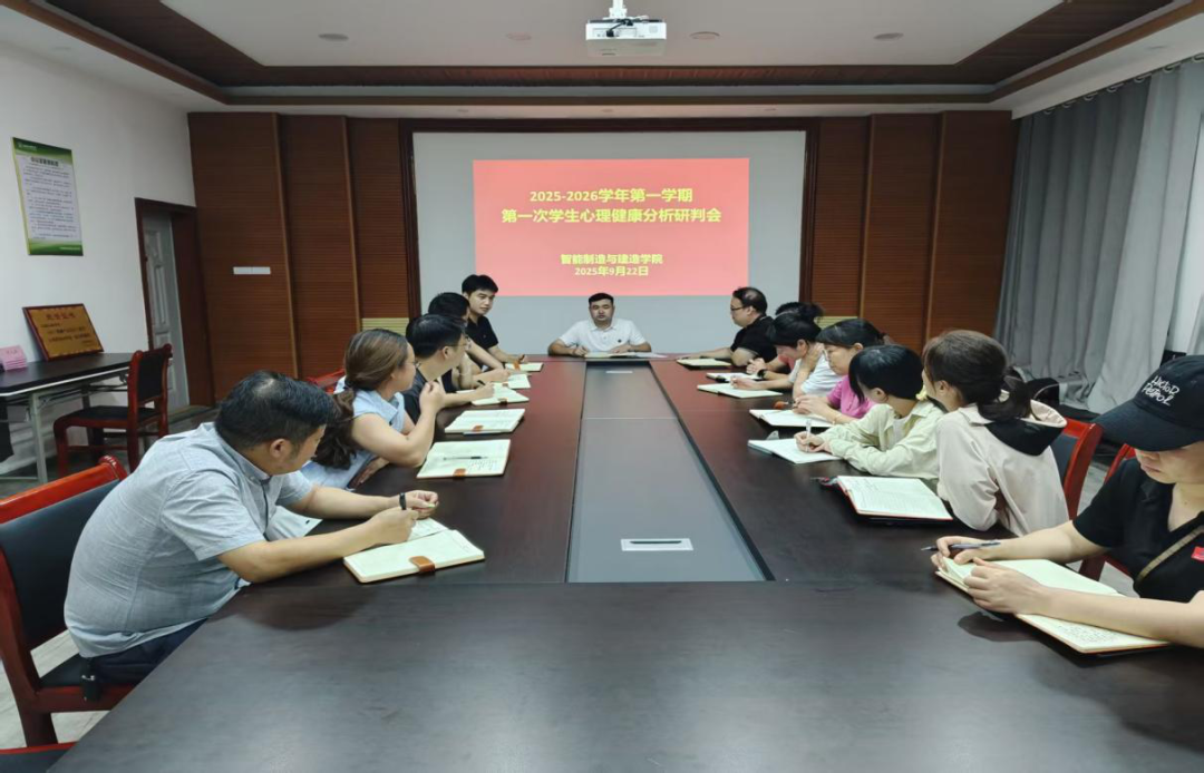 为精准掌握新学期学生心理健康状况,筑牢学生心理健康安全防线。2025年9月22日,智能制造与建造学院在仙女湖校区A栋103会议室召开2025—2026学年度第一学期第一次学生心理健康分析研判会。会议由党总支书记范向红主持,党总支副书记李思及各班级辅导员参加。