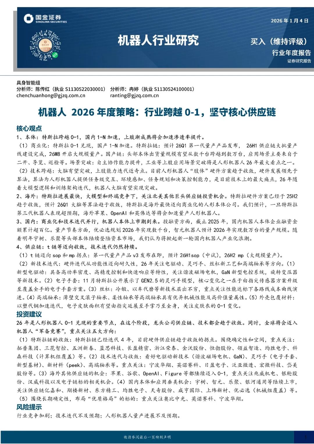 机器人行业2026年度策略:行业跨越0-1,坚守核心供应链-260104-国金证券-58页