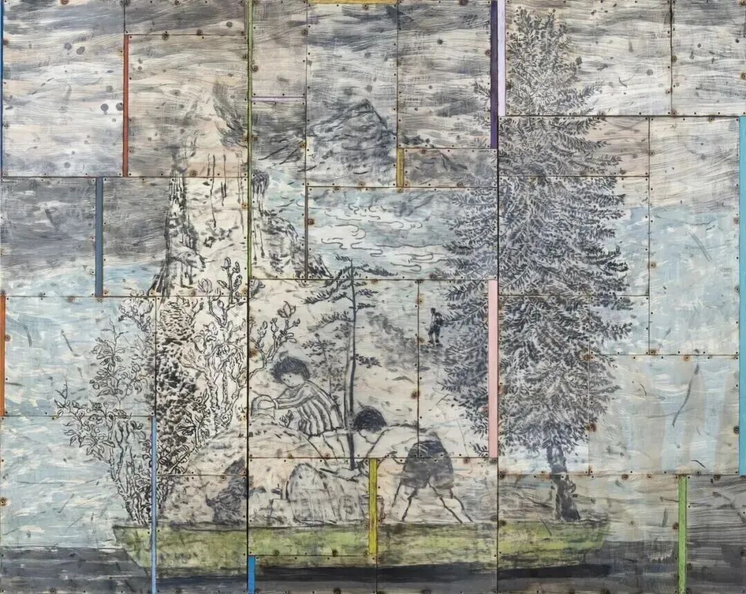 林科《缩略图肖像》2022,油墨在阳极氧化铝板,铝型材背架,200 × 150 × 2.5 cm
