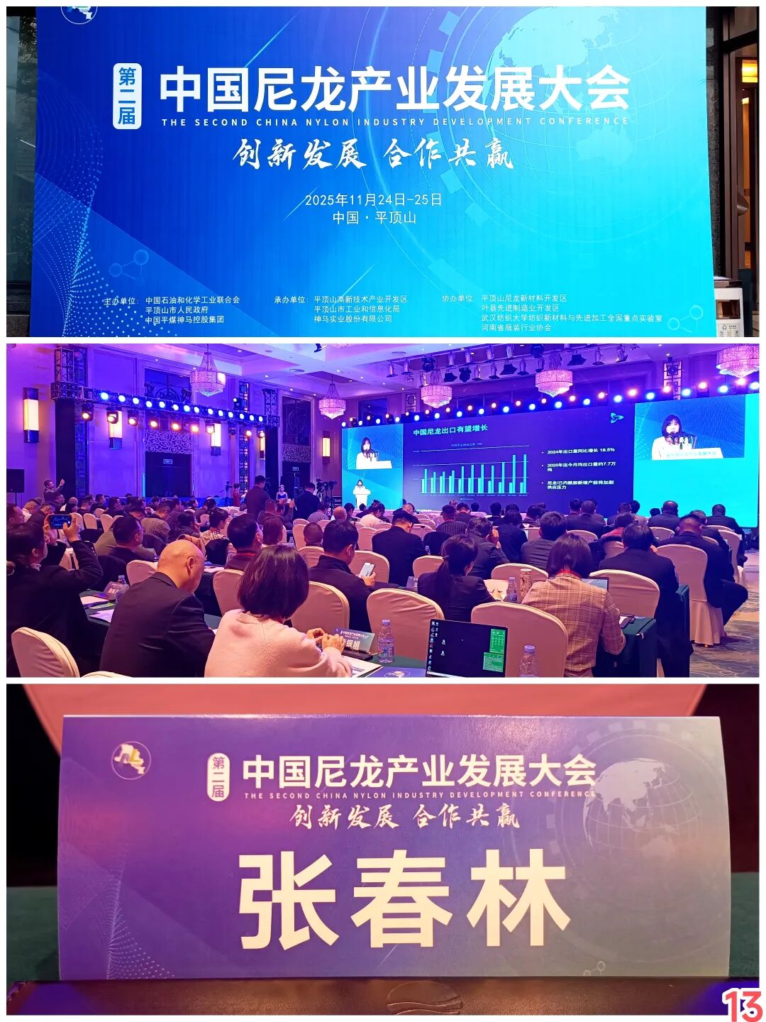 11月24日-25日,第二届中国尼龙产业发展大会暨绿色纤维·循环经济·可持续发展”主题论坛在河南省平顶山市成功举办。大会由中国石油和化学工业联合会、平顶山市人民政府、中国平煤神马集团主办。此次会议邀请中国纺织工业联合会、中国纺织工业企业管理协会、中国纺织品商业协会、中国纺织品进出口商会等全国性行业组织,以及江苏、浙江、福建、河北、河南等省市服装行业协会,东华大学、浙江理工大学、天津工业大学等高校学者,际华集团、永荣控股、波司登、森马、鸿星尔克等产业链企业代表齐聚一堂,共同研讨尼龙产业前沿趋势、分享创新成果、谋划合作新篇。