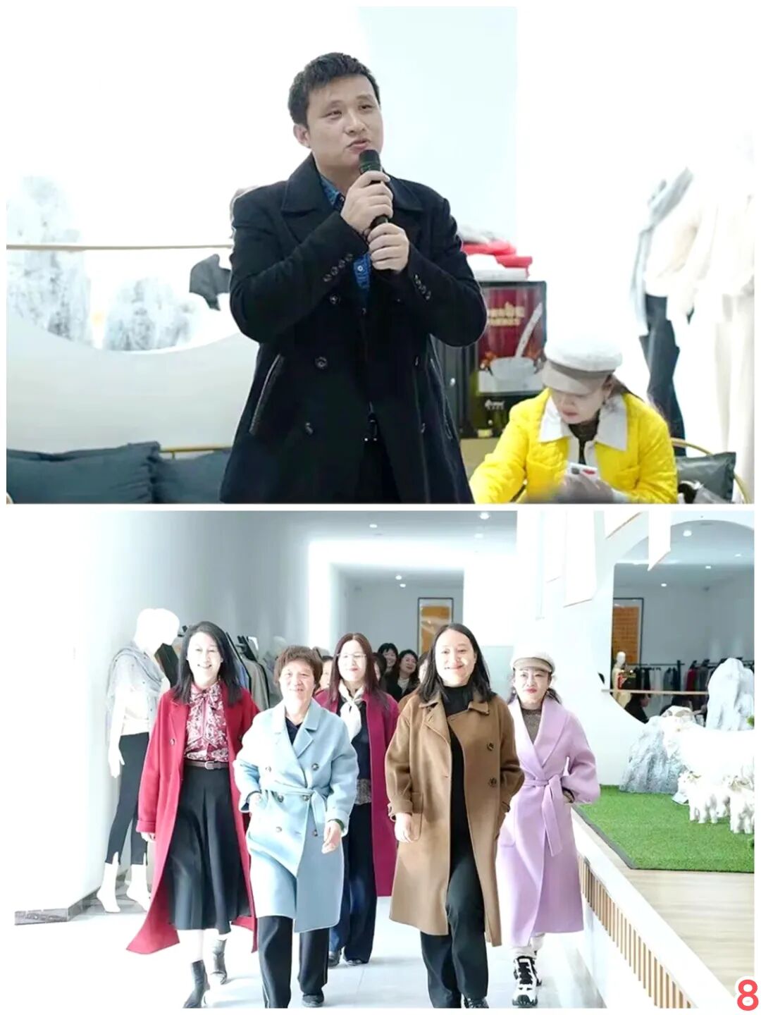 在圣雪海公司展厅,参访团成员纷纷身着华服,以最美姿态为圣雪海发声,展现了一场精彩的服装时尚盛宴。